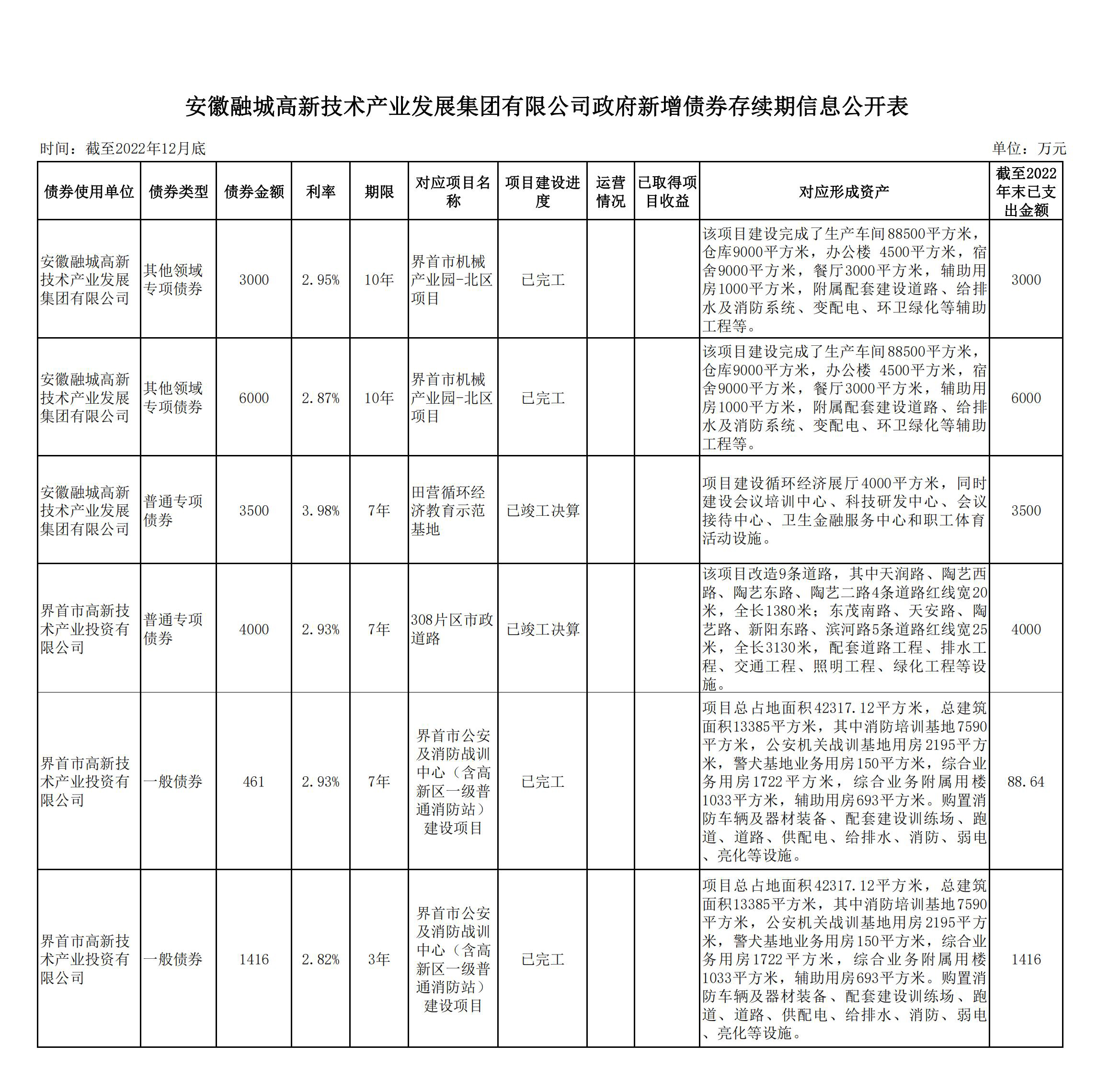 安徽融城高新技術(shù)產(chǎn)業(yè)發(fā)展集團(tuán)有限公司政府新增債券存續(xù)期信息公開(kāi)表